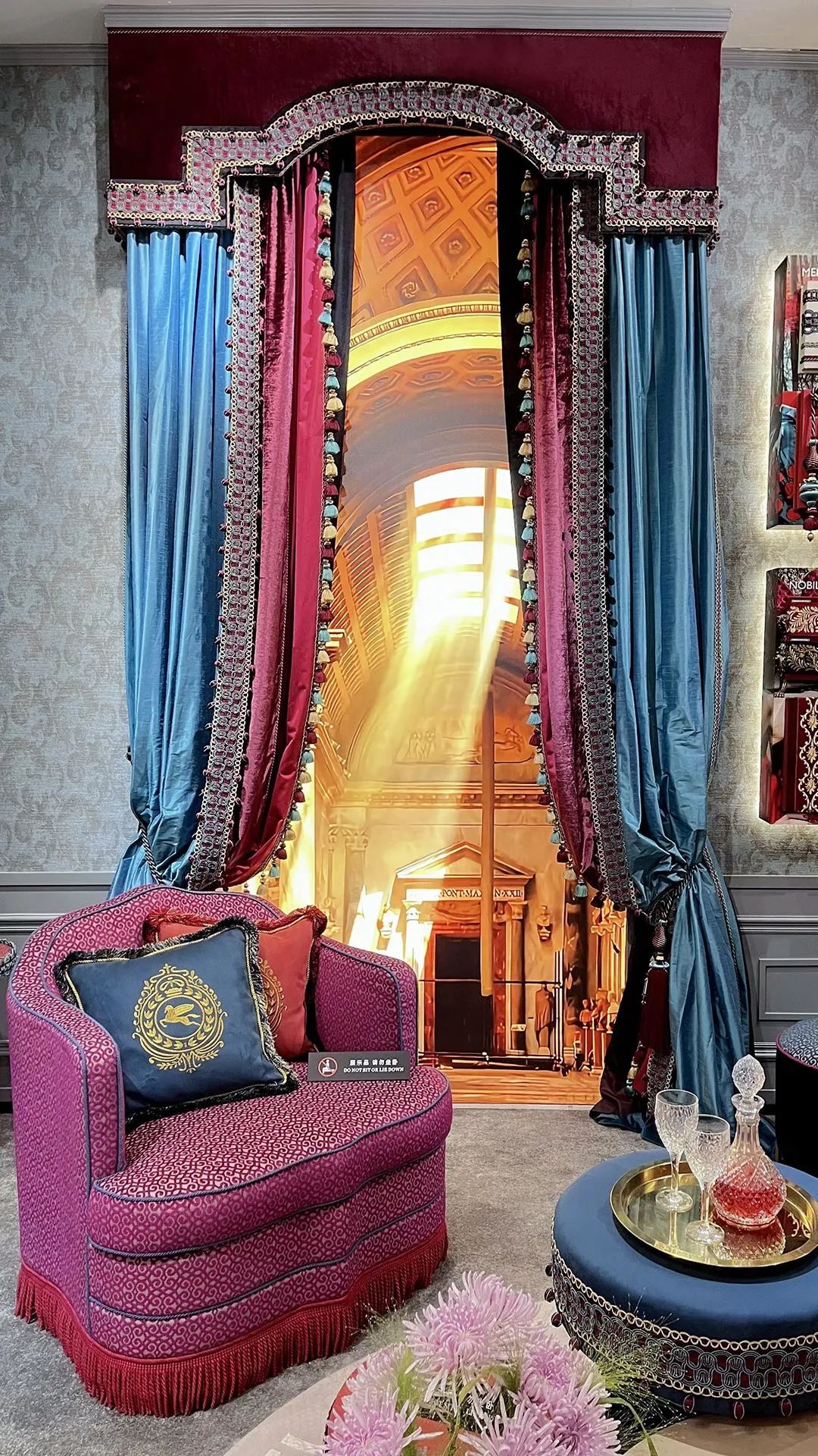 窗簾和抱枕均使用引人注目的「美第奇」產(chǎn)品,