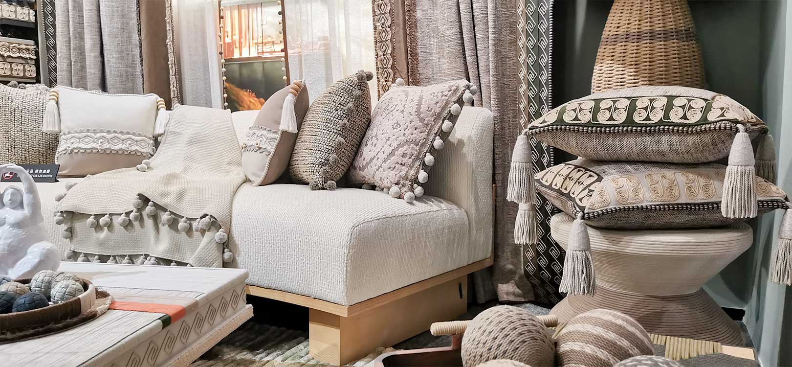 藤蔓棉麻絨球穗花邊